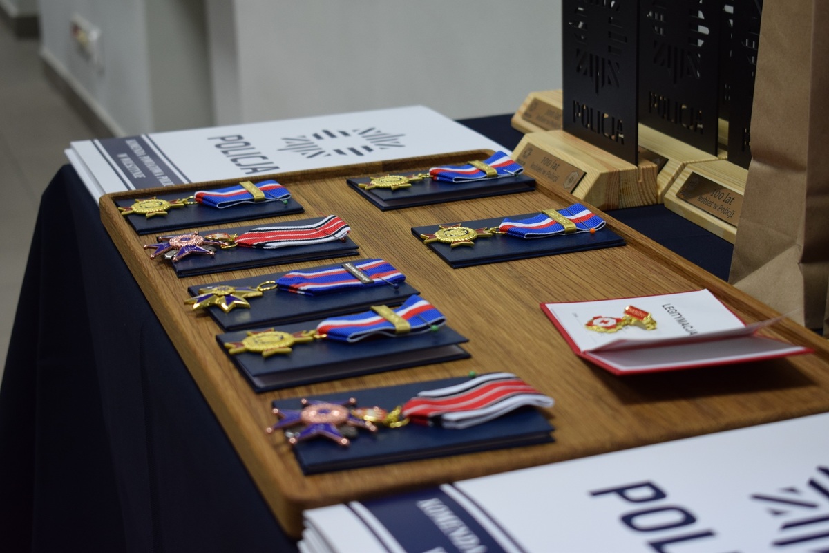 W kolejnym punkcie scenariusza zaplanowano wręczenie wyróżnień związanych z rokiem jubileuszu stulecia kobiet w polskiej Policji. Otrzymali je funkcjonariusze wchodzący w skład kierownictwa jednostki, uzupełniając grono policjantek, policjantów oraz gości, którzy odebrali je podczas obchodów tegorocznego Święta Policji.
